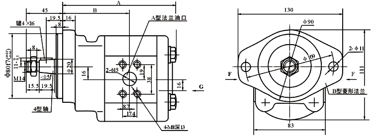 2.非額定工況下(壓力、轉速)的容積效率值參見工作性能曲線。 |