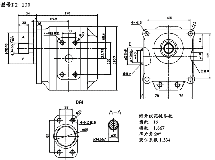 P1-45變速齒輪泵、P2-100轉向齒輪泵、CBB1002潤滑泵