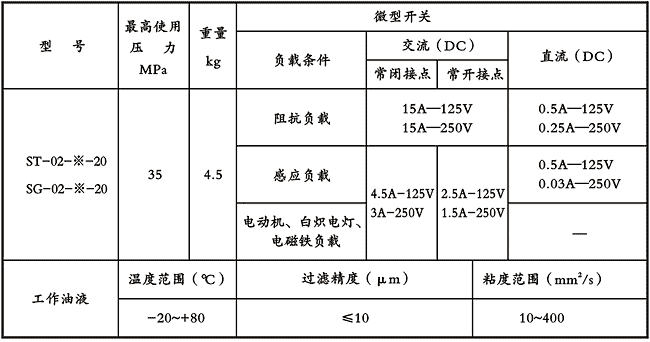 特征與用途: S※型(xing)壓(ya)力(li)繼(ji)電(dian)器(qi)用(yong)於(yu)液(ye)壓(ya)係(xi)統(tong)中(zhong)的(de)壓(ya)力(li)信(xin)號(hao)轉(zhuan)變(bian)為(wei)電(dian)信(xin)號(hao)的(de)場(chang)合(he),它(ta)有(you)兩(liang)個(ge)微(wei)動(dong)開(kai)關(guan),可(ke)分(fen)別(bie)將(jiang)高(gao)低(di)壓(ya)信(xin)號(hao)轉(zhuan)變(bian)為(wei)電(dian)信(xin)號(hao),微(wei)動(dong)開(kai)關(guan)具(ju)有(you)防(fang)塵(chen)、防火的特點。 圖形符號: