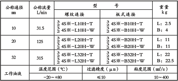 注:M型閥芯的流量分別為20、90、200L/min;油液最高汙染等級按GB/T14039之19/16。