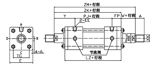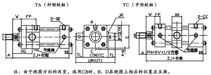 注意:UT、UC為杆側鉸軸尺寸。其它尺寸參照基本型。