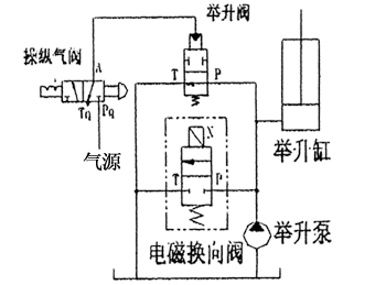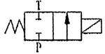 當車廂舉升到最大轉角位置時,限位機構觸點將電器行程開關的觸點壓下,電磁鐵N得電,換向閥P口與T口接通,使舉升缸供油口與T口瞬間連通,舉升缸即下降一段距離(車廂舉升轉角變小),隨車廂舉升轉角變小限位機構觸點離開電器行程開關的觸點使電磁鐵N失電,電磁換向閥恢複原始狀態同時係統壓力油再次進入舉升缸使其上升(車廂再次舉升到最大轉角位置)。電磁鐵N在電器行程開關得電―失電―得電範圍內(即P口的開啟―閉合―開啟)實現車廂下降―舉升―下降往複變化過程,使車廂產生輕微抖動有利於將車廂內的殘留物體卸掉。該閥的工作原理示意圖如下。