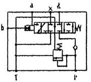 當氣控口b接通氣源,推動氣控抉向閥的閥芯至下降位置使車廂舉升下降,同時泵卸荷。